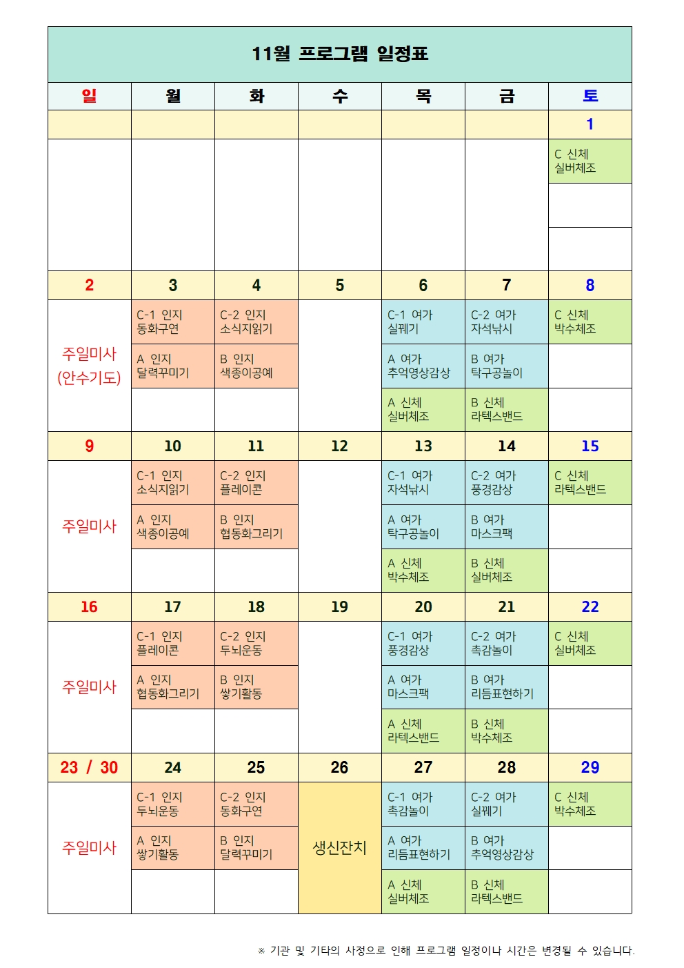 11월 프로그램 계획표