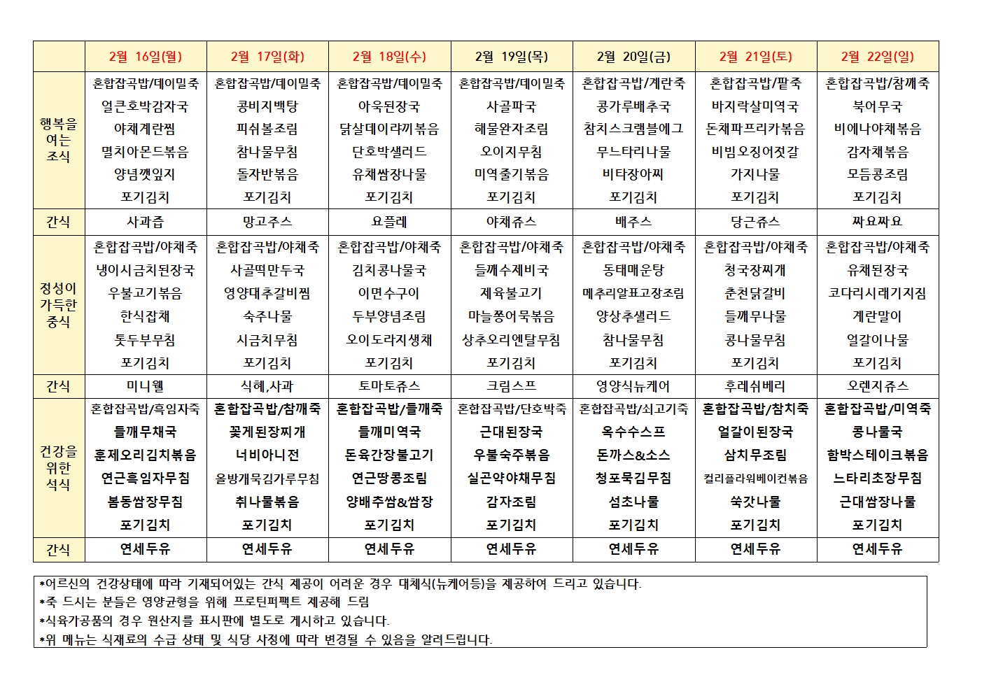 2월16일~2월22일 주간식단