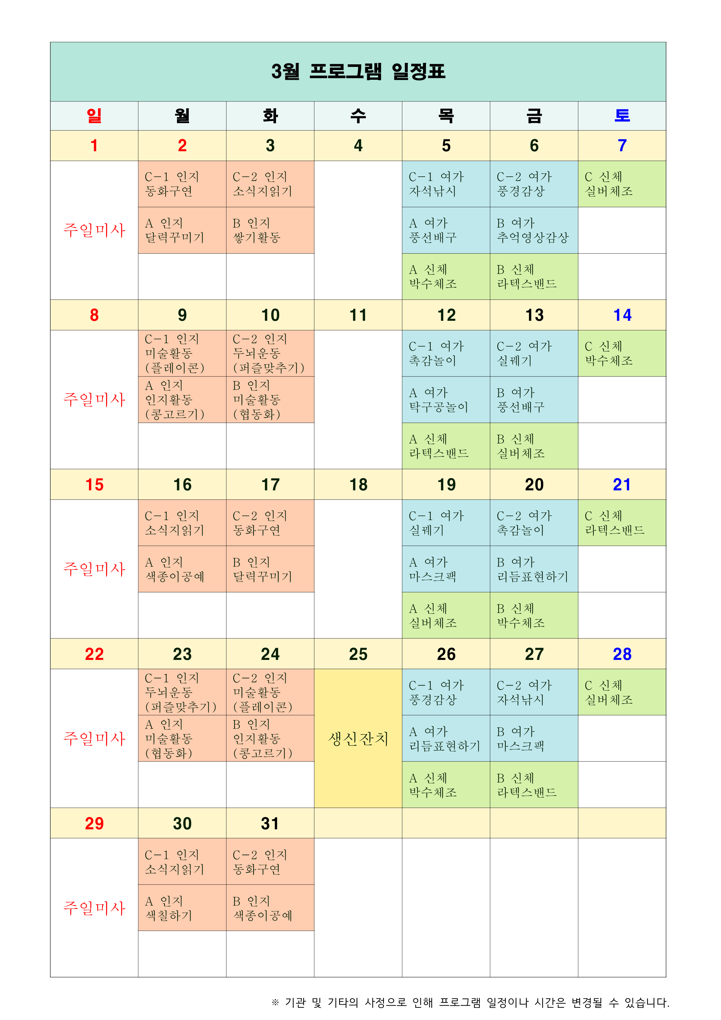2026년 3월 프로그램 계획표